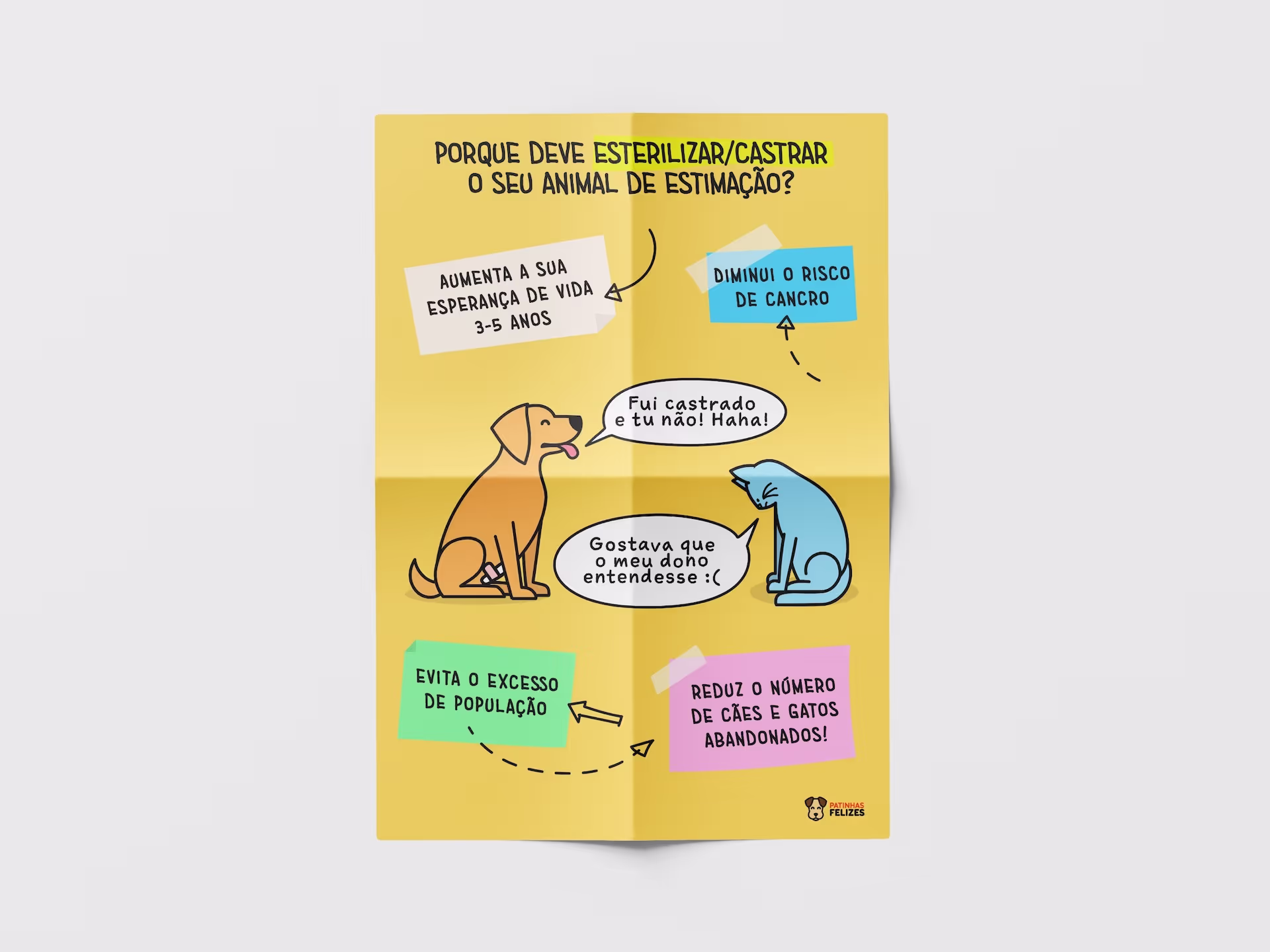 Patinhas Felizes is an animal shelter founded in 2014 in Funchal.This rebranding embraces a fresh, vibrant identity that reflects the warmth and care they offer to every animal. The new logo, featuring a friendly dog, symbolizes the loyalty and love that this shelter stands for. Placed next to the logotype, the logo-mark creates an immediate connection, making it recognizable and approachable to the community.The identity begins from the idea of creating a visual representation that captures the spirit of the shelter. The choice of orange as the main color is deliberate—it embodies energy, enthusiasm, and a sense of welcoming. Orange is a color that stands out, much like the commitment and passion their team brings to the shelter every day.The design process was centered around making the brand more inclusive and engaging. The visual identity is both simple and impactful, ensuring it resonates with all age groups. The new identity is not just a brand refresh; it’s a celebration of the bond between people and animals, reflecting their mission to find loving homes for these animals.A poster was designed to raise awareness for the benefits of animal neutering as prevention for abandonment of new-born puppies and kittens.